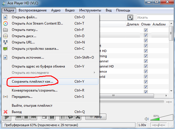 как делать файл формата xspf берем ID трансляции и впихиваем в плеер acestream те каналы которые вам нужны потом делаем всё как на скрине